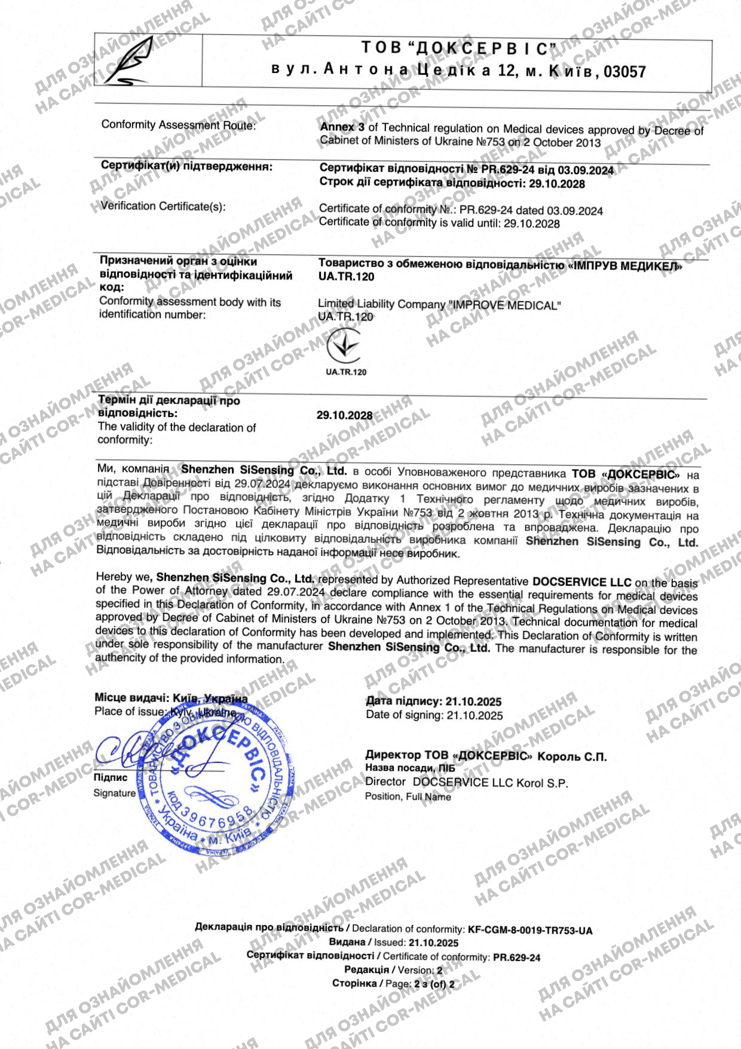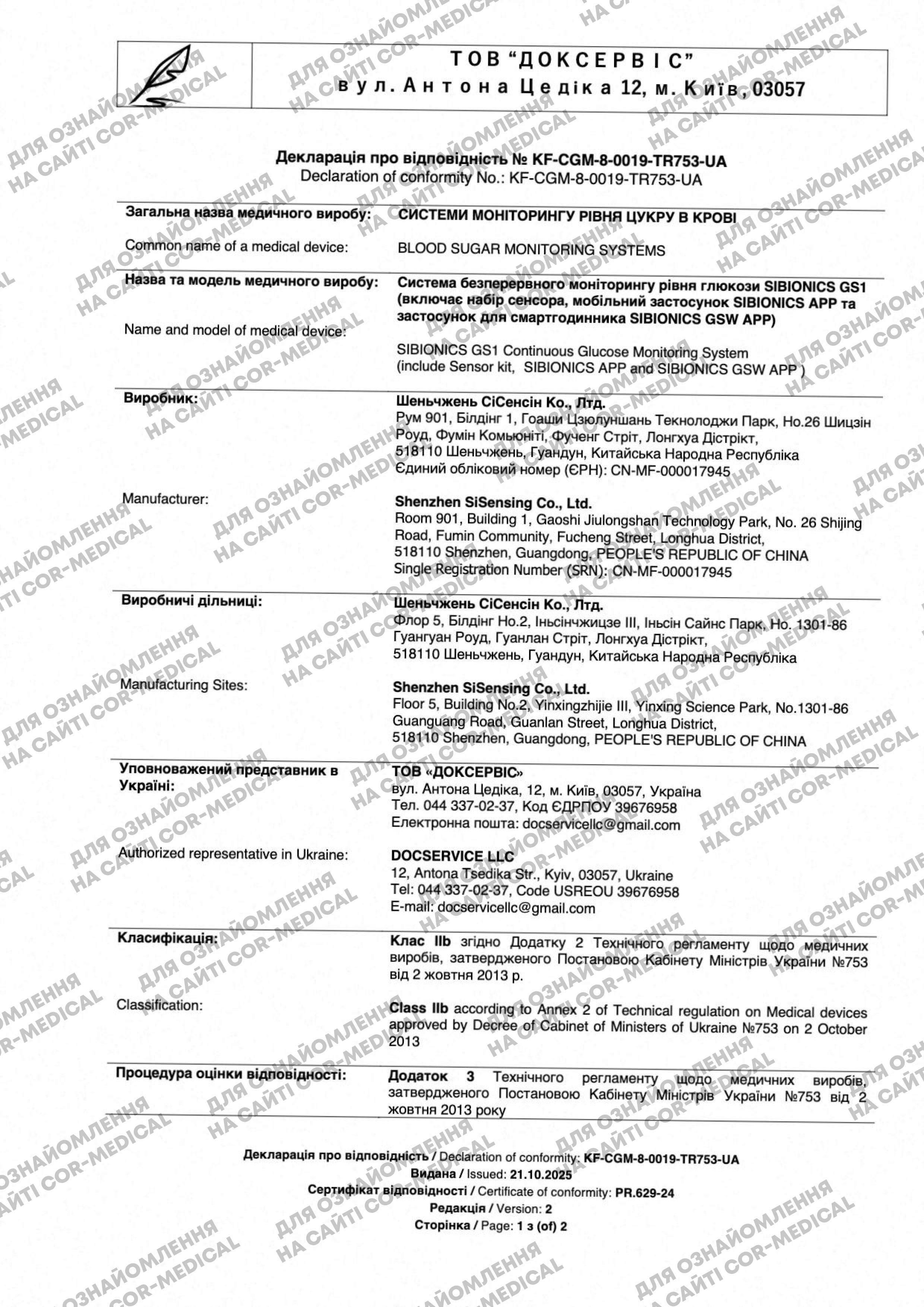 COR-Medical является официальным представителем SIBIONICS в Украине, все устройства официально ввезены, а точность и надежность подтверждены производителем: